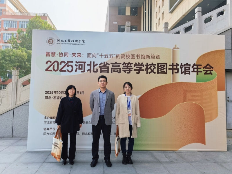 2025年10月29日至31日,以“智慧·协同·未来:面向‘十五五’的高校图书馆新篇章”为主题的河北省高等学校图书馆年会在河北工程技术学院隆重召开。本次盛会由河北省高等学校图书情报工作委员会主办,河北工程技术学院承办,同方知网(北京)技术有限公司河北分公司、河北超星技术有限公司、阅途文化集团联合协办,汇聚全省各高校图书馆领域的专家学者与实务骨干,共同探讨新时代高校图书馆发展的新路径与新可能。我校图书馆馆长李世新、信息资源保障中心主任颜华及阅读文化推广中心屈韶伟老师组成代表共赴年会。