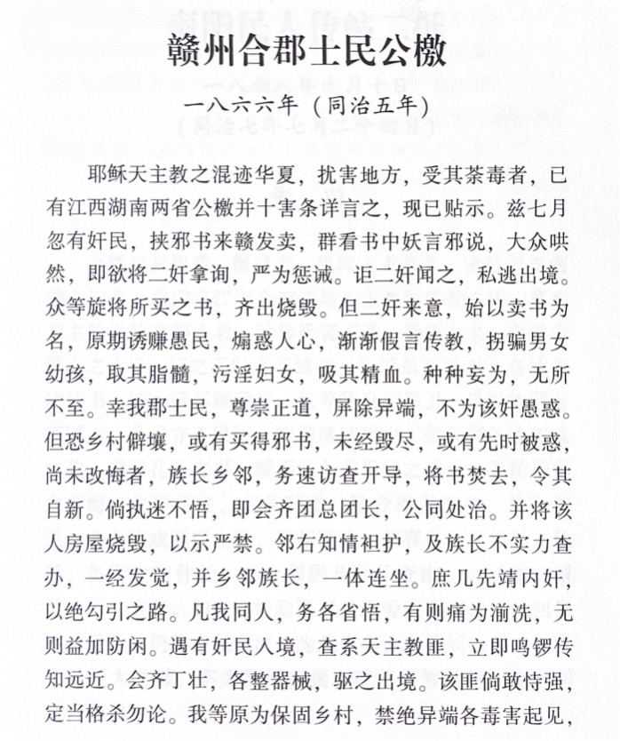 节选内容中,檄文不仅控诉了统治阶级的横征暴敛、贪官污吏的欺压盘剥,更痛斥了列强侵略对中国领土与民生的破坏,将农民的生存困境与民族危机紧密相连。文中提出的“均田免粮”“废除苛捐”等主张,直指农民最迫切的生存需求;而“共御外侮、保卫家国”的号召,则展现了农民群体朴素的民族意识。这些檄文以通俗的语言在民间广泛传播,成为动员群众参与斗争的重要工具,也让我们看到,农民群体虽身处社会底层,却始终怀揣着守护家国的赤诚。