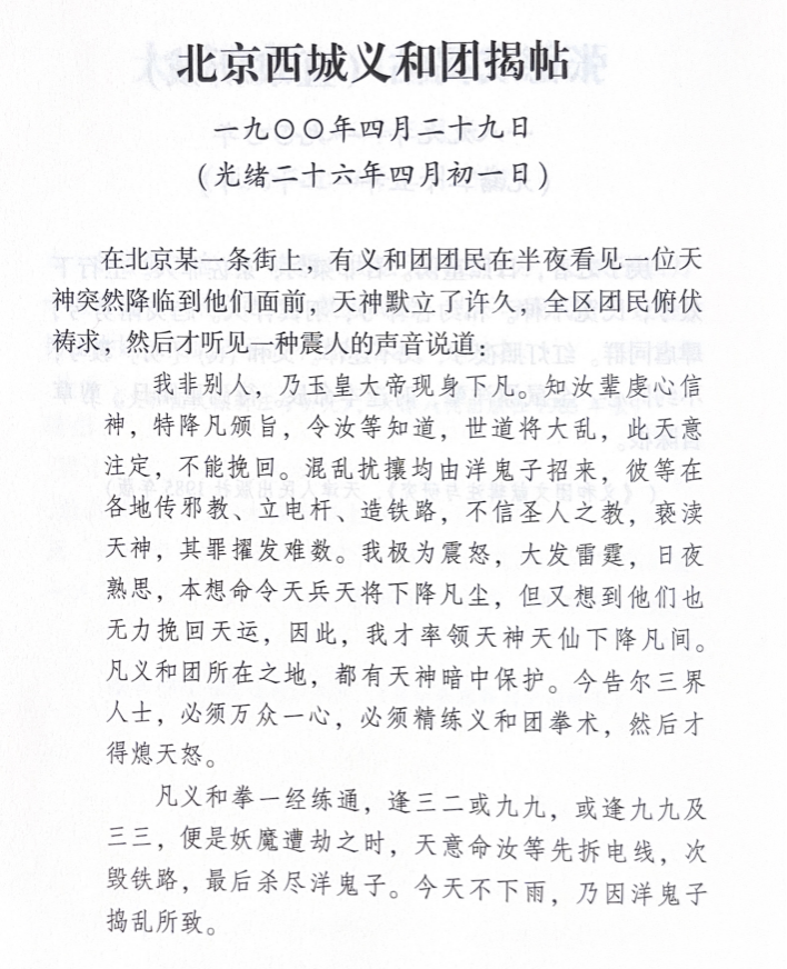 如果说农民起义檄文聚焦内外双重压迫,那么义和团运动的揭帖,则更鲜明地凸显了“反侵略、保家国”的斗争主题。作为农民群众自发组织的反侵略斗争产物,这些文献以最贴近民间的表达形式,传递着抵御外侮的坚定决心。