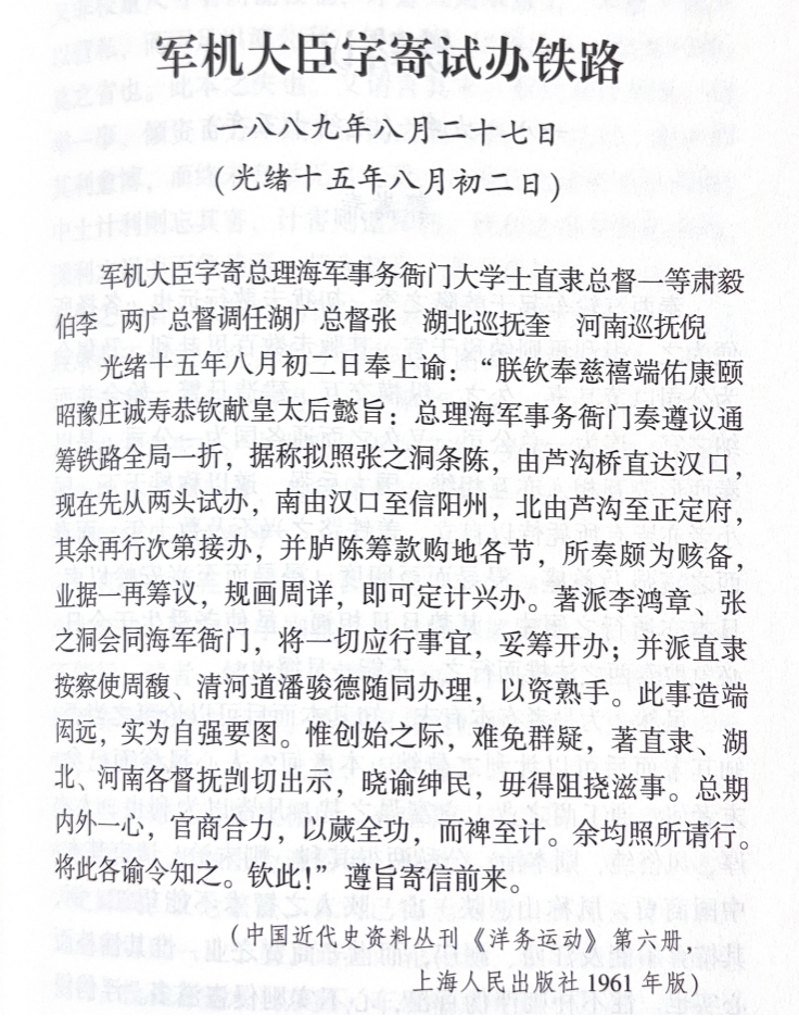 《军机大臣字寄试办铁路》