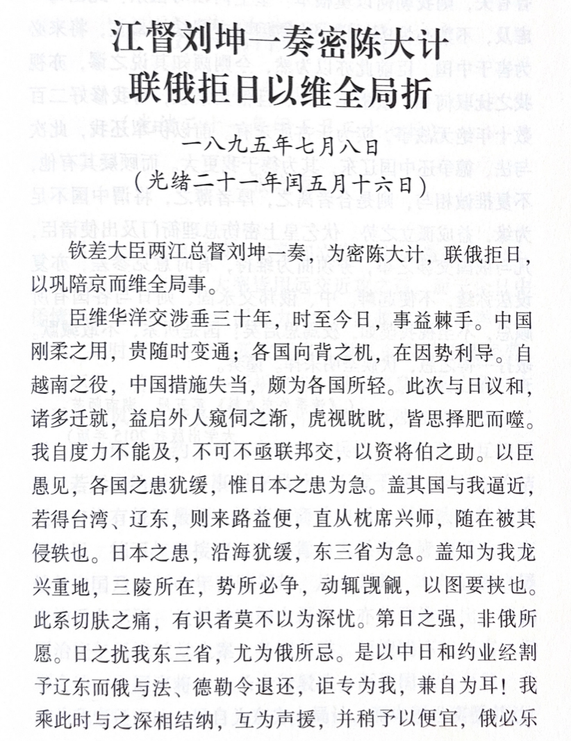 《江督刘坤一奏密陈大计联俄拒日以维全局折》